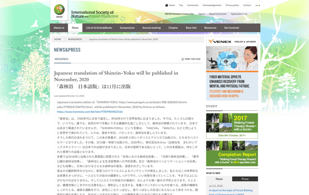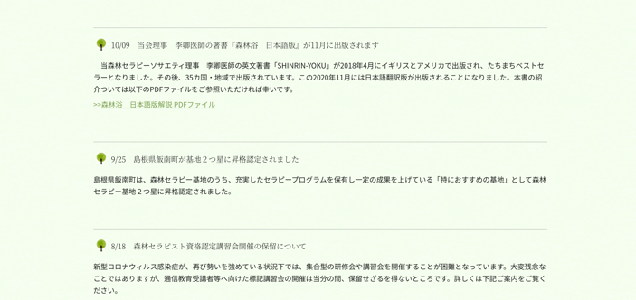 2020年10月9日 森林セラピーソサエティ お知らせ