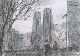 Facing Tokyo City Hall and the cluster of skyscrapers, the main street in front of Shinjuku Central Park looks as if winter were already here.
