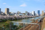 Where the Chuo and Sobu Lines run side by side between Iidabashi and Yotsuya Stations, the walking path at Sotobori Park—about two kilometers long—is the ideal location to view this beautiful sight.