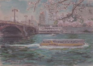 The Sumidagawa Line is a water transport that follows the Sumida River downstream from the foot of the Azuma-bashi (Azuma Bridge).Cherry trees majestically line the river banks, creating an idyllic scene of Tokyo in the spring.